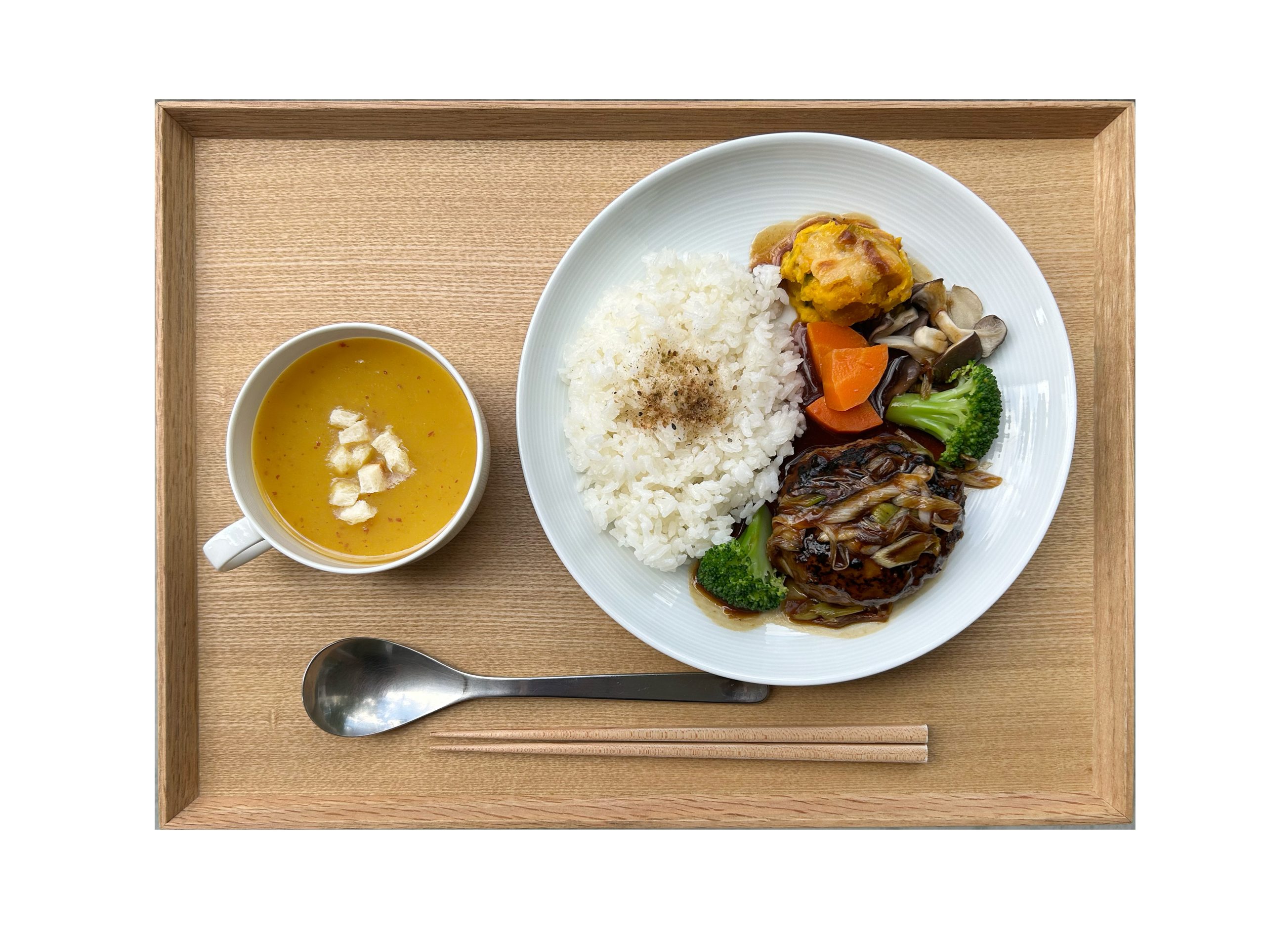 OUCHI CAFEでは、栄養満点で体に優しいごはんやカフェメニューをお楽しみいただけます。定番のOUCHIプレートは、香ばしいハーブチキンと野菜をふんだんに使った副菜・サラダのセットです。ほかにも、日替わりのランチプレートやカレープレート、トーストセットなど、さまざまなメニューをご用意。自家製ジュースやスイーツも提供しています。