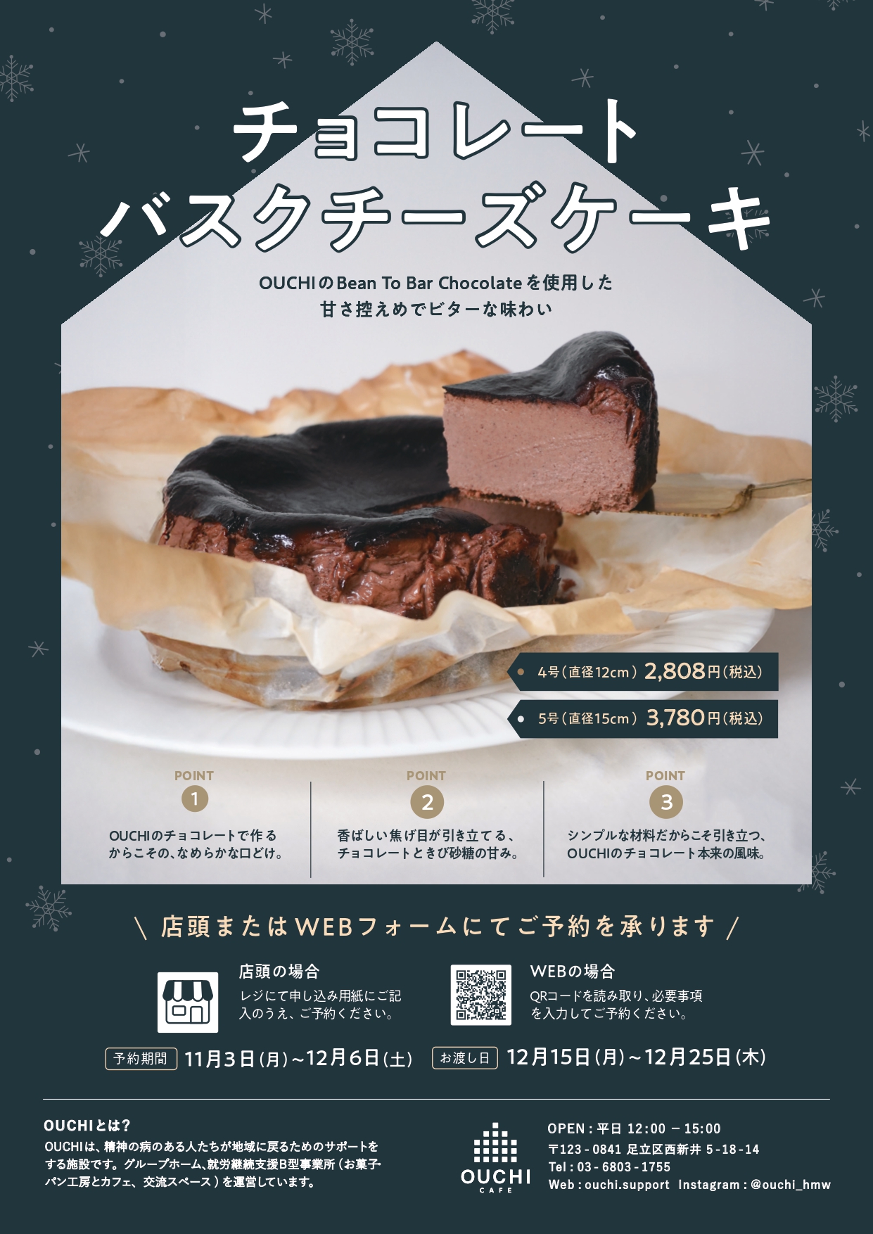 OUCHIのチョコレートが、オリジナル『チョコレートバスクチーズケーキ』になりました。